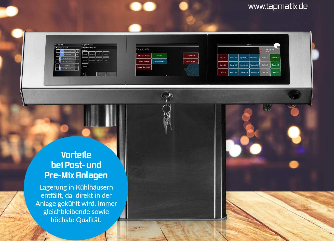 Mit den TAPMATIX Cocktailmaschinen und elektronischen Schankanlagen servierst du perfekte Cocktails, Longdrinks, Hauslimonaden, Eistee und Spritz-Getränke – konstant, hygienisch und ohne Schankverlust.